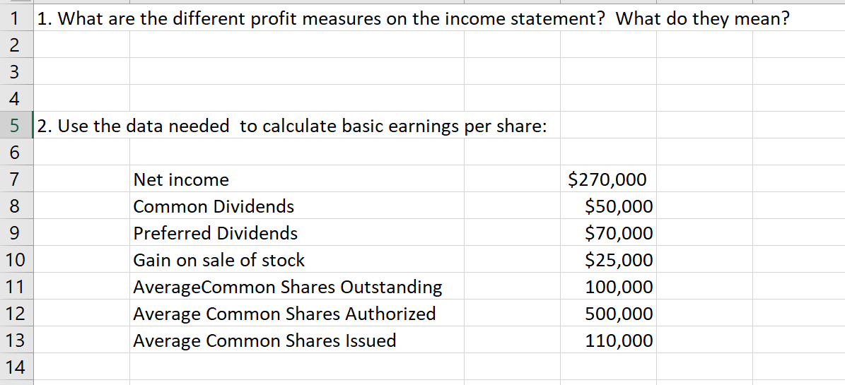 Solved 1 1 What Are The Different Profit Measures On The Chegg Com