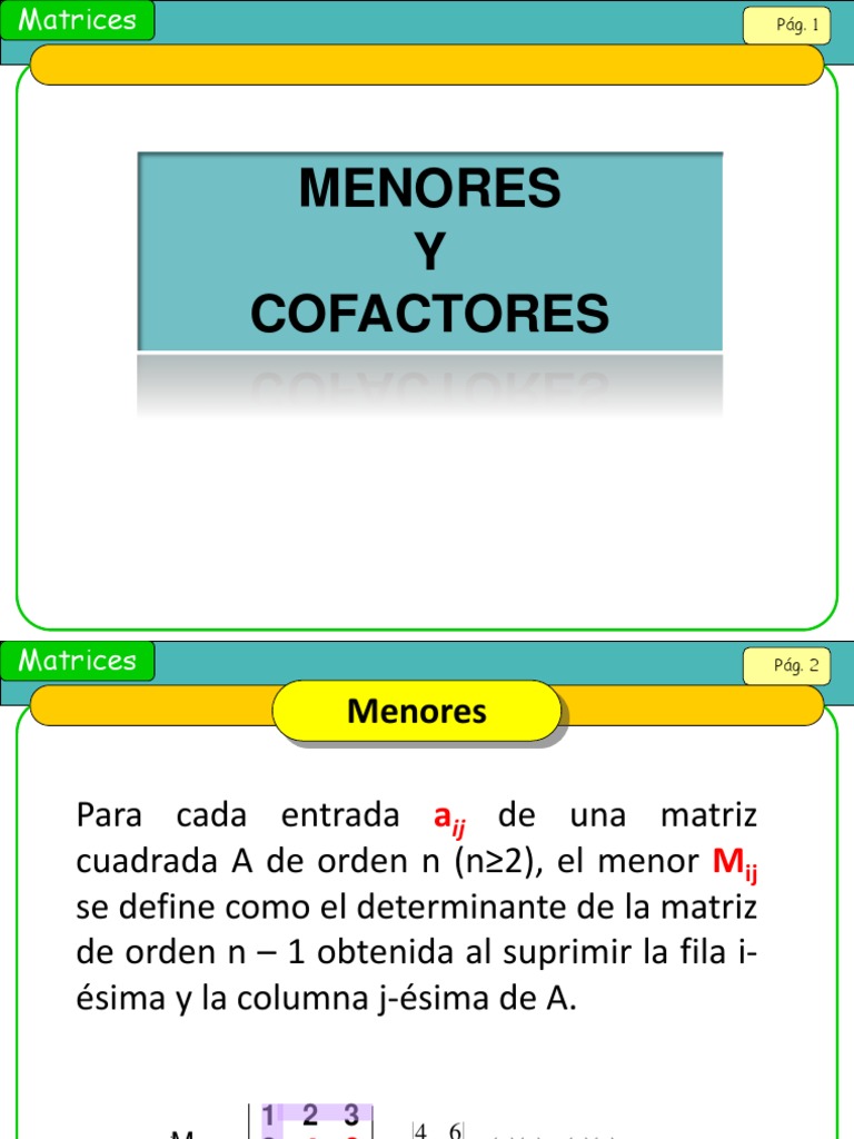 Calculadora de matrices Cofactor y adjunta en l铆nea paso a paso utilizando determinantes de c谩lculo de submatrices. De nici on y propiedades b asicas del determinante de una matriz cuadrada. Calcular una determinante de la matriz cuadrada principal.